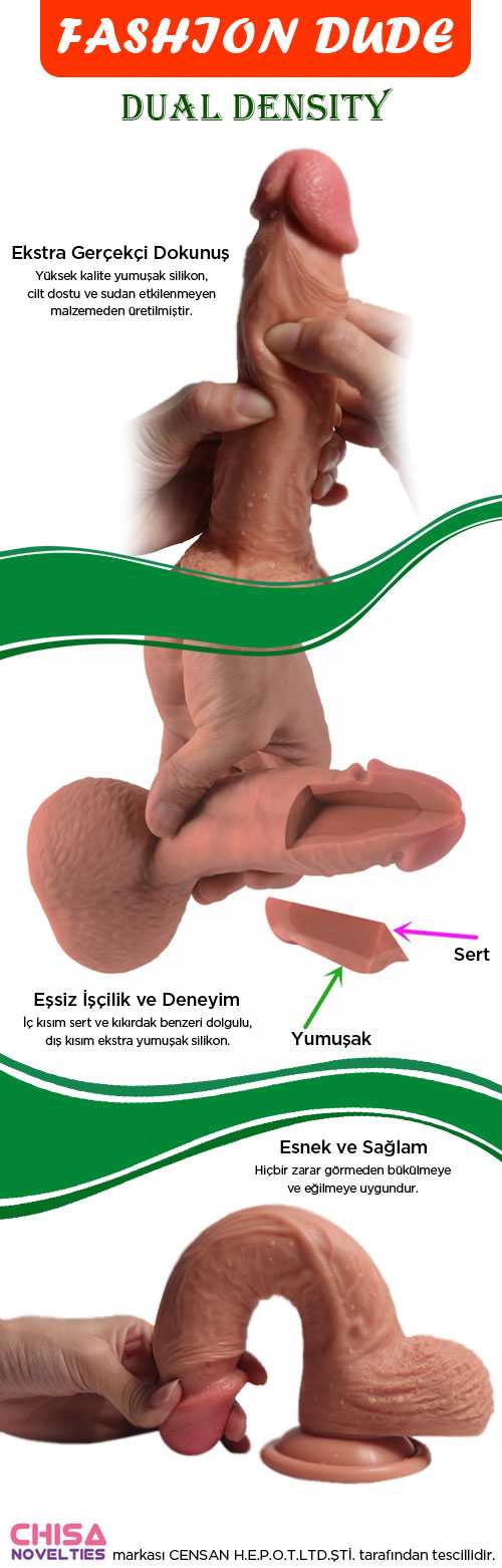 Anti-bakteriyel, ekstra gerçekçi dokunuşa sahip, yumuşak, esnek ve sağlam, çift katman dokulu, güçlü vantuzlu, 17.8x4cm ebatlarında, eşsiz işçilikte kaliteli dildo.